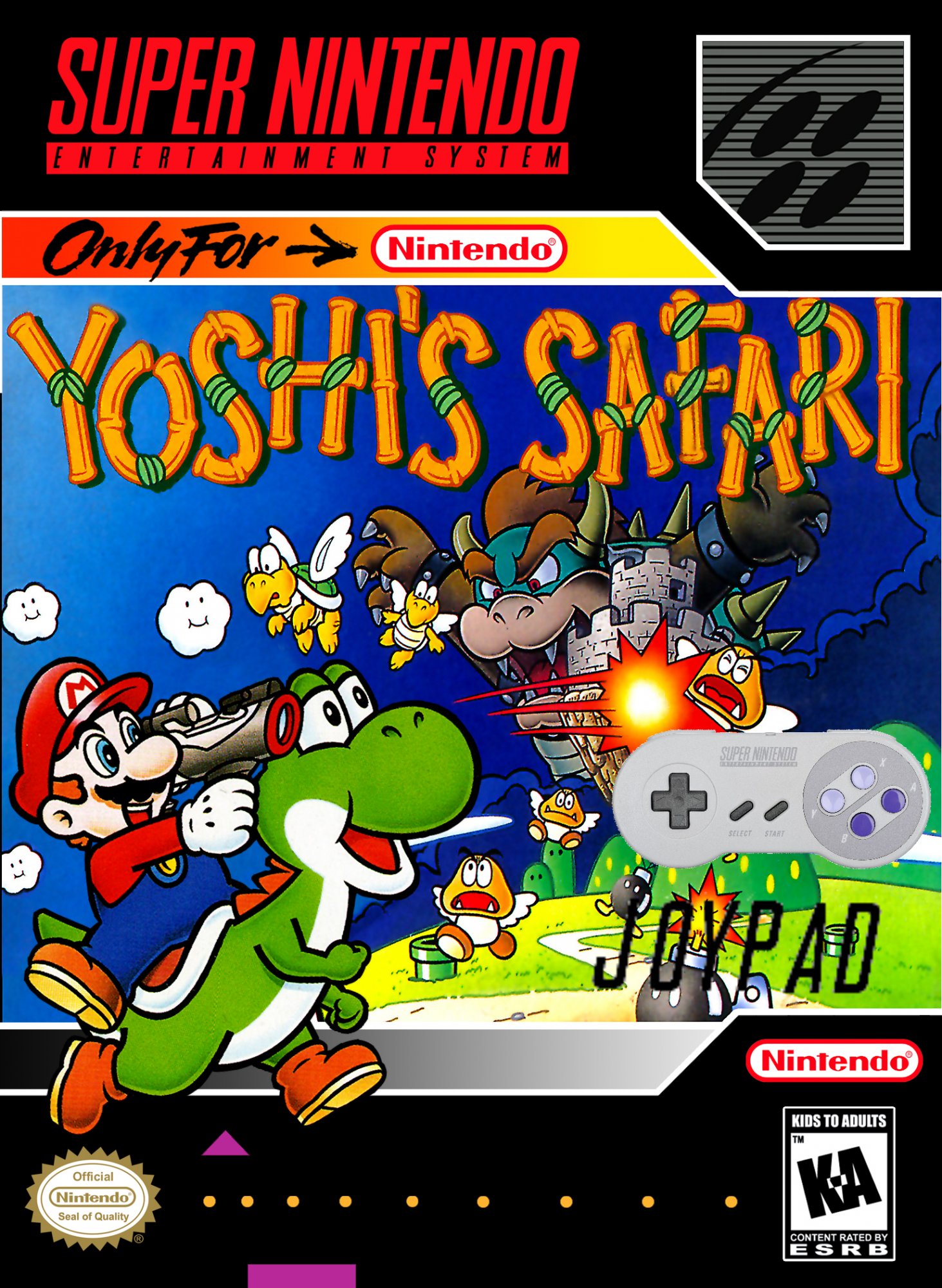 Play alone or have a friend join you to guide Yoshi. The unique first-person viewpoint is provided exclusively by the Super NES and its Mode 7 graphics capability. Combined with the pinpoint accuracy of the Super Scope, Yoshi's Safari is sure fire fun!