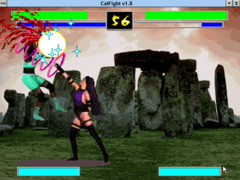 CatFight: The Ultimate Female Fighting Game is an all-woman fighting game, resembling the early editions of Mortal Kombat where the sprites representing the fighters were also created using digitized actors. Katalin Zamiar, an American martial artist, is featured in-game through this method as the ninja woman character Chae Lee.The short plot revolves around an evil goddess who summons some of the world's greatest fighters to a few number of arenas for a fighting challenge. The player may choose from ten different characters, who are all scantily clad women.