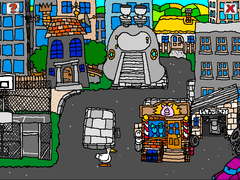 Duck City is a wacky and fun collection of 6 action and puzzle games designed for kids of all ages. Designed by Alan Snow, creator of P.A.W.S, Duck City stars a talking cartoon duck who wanders around in his cartoon world, getting into one trouble after another. In one mini-game that is similar to basketball, you will see how a duck can pull off spectacular slam dunks. In the farm, you must fatten slugs by feeding them cabbages. The barber shop is the site of one of the game's most unique games: here, you cut and dry customers' hair to make cool haircuts. In the garage, you can participate in a fun cross-country racing. And finally in a lab, you can tinker with various gadgets and interact with RoboDuck, a cross between RoboCop and a duck. All the games are simple to learn and easy to use - you need to memorize only a few keys and mouse clicks. With attractive and creative cartoon graphics, fun mini-games, and a transparent and intuitive interface, Duck City is a fun "interactive environment" for everyone in the family. None of the game has lasting play value, but they are ideal for a 5-10 minute coffee break at the office... or a fun evening for the kids in your house.
