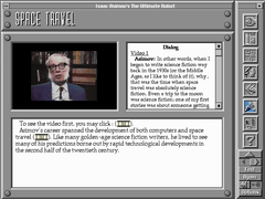 You'll learn about the history and principles of robotics, and hear and see Asimov himself discuss the field. The Robotoid Assembly Toolkit (created by Ralph McQuarrie, the production designer for Star Wars) lets you build, animate, and save or print images of the virtual robots you construct. You can also see film clips of famous and not-so-famous movie robots or read from the sizable collection of Asimov's short stories and essays. His "Three Laws of Robotics" are discussed in detail, as are their impact on literature and actual science.