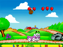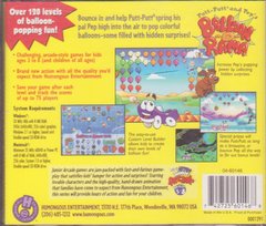 The game starts with Putt-Putt (the purple car) and Pep (his brown puppy) driving on to the screen with a bunch of balloons in peps mouth. Putt-putt tells his companion to hold on to the balloons tightly, which Pep immediately lets go of by barking.In the rest of the game, the player progresses through different levels popping the balloons which seem to have multiplied hundreds of times. Using the mouse, move Putt-putt across the screen, bouncing Pep on the seats or dashboard. Different balloons are introduced during the game including candy balloons which gives the player 50 points for each piece of candy caught, paint-bucket balloons which change the player's color depending on the balloon, and question mark balloons which gives the player a power-up such as Fireman Pep. The game also has a level builder.