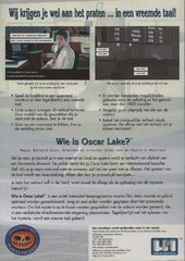 Who is Oscar Lake? is a point-and-click adventure game with FMV sequences that aims to teach a foreign language. Several versions are available, both for the language to be learned (e.g. German, Spanish and French), and the learner's mother tongue.The player assumes the role of a traveller to a foreign country, and is accused of stealing a priceless diamond. The police thinks the player is Oscar Lake, a notorious thief, and only through thorough investigations and interactive conversations can his innocence be proven. All conversations are in the foreign language, and have several options that lead to a different outcome and eventually different endings. The game has over 1200 vocabulary words.Built-in tools like a dictionary provide help for the player, and it is possible to record voices and listen to native speakers pronounce words and phrases.