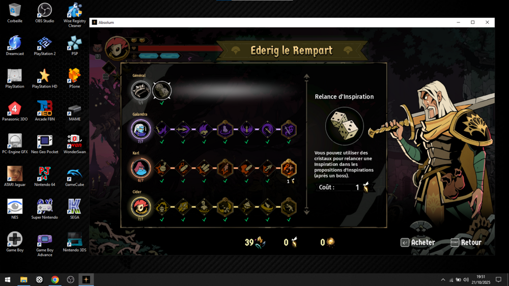 ABSOLUM est un jeu rempli de surprises, j’ai beau l’avoir fini quatre fois, à chaque nouvelle partie je découvre de nouvelles choses, de nouveaux items, de nouveaux chemins cachés et même de nouveaux boss !!! Ce jeu est incroyable de richesses et j’en est toujours pas fait le tour tellement il y a de choses a faire dans ce jeu. Demain je publierai sur ce topic le playthrough d’ABSOLUM effectué avec Cider et tout ça en une seule vidéo. C’est indéniablement mon plus gros coup de cœur 2025 tant le jeu est incroyable. ^^2 points